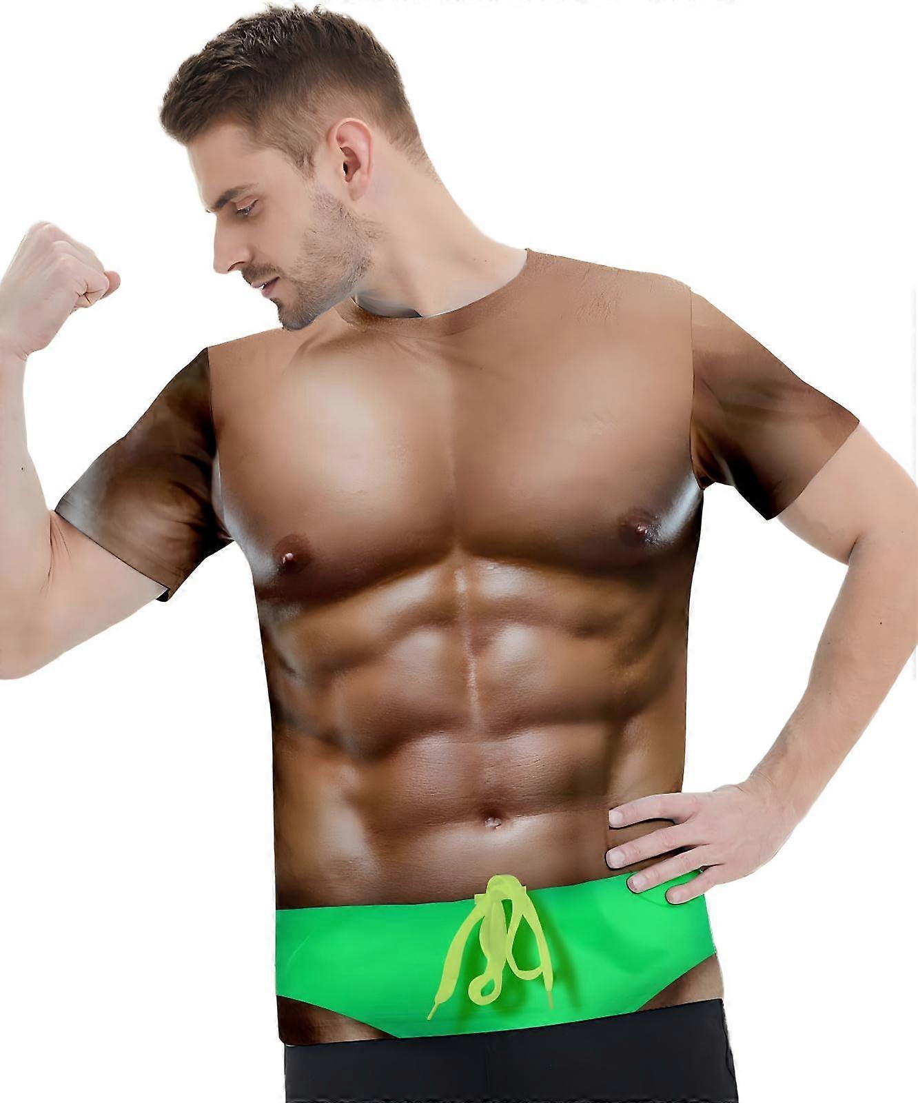 Men's Loose Fit 3D Muscle Casual Creative Printed Crewneck Party Funny Unisex T-shirt