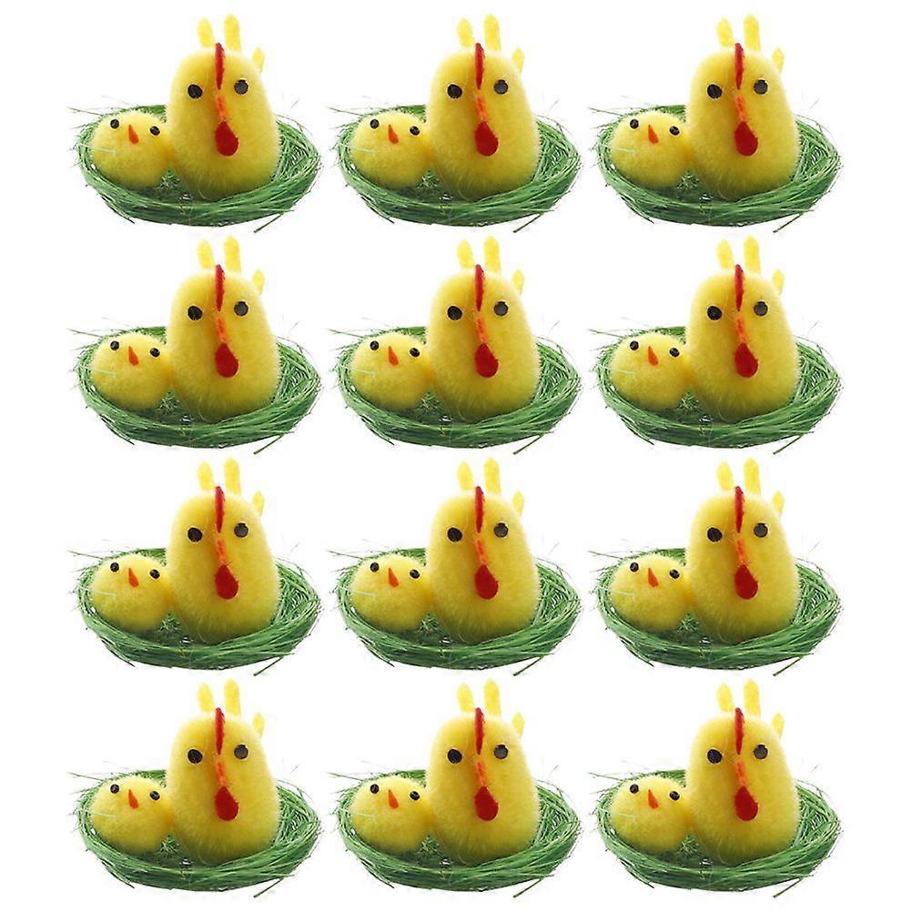 12pcs Chick Ornament Household Desktop Decor Mini Chicks Plaything (Yellow)