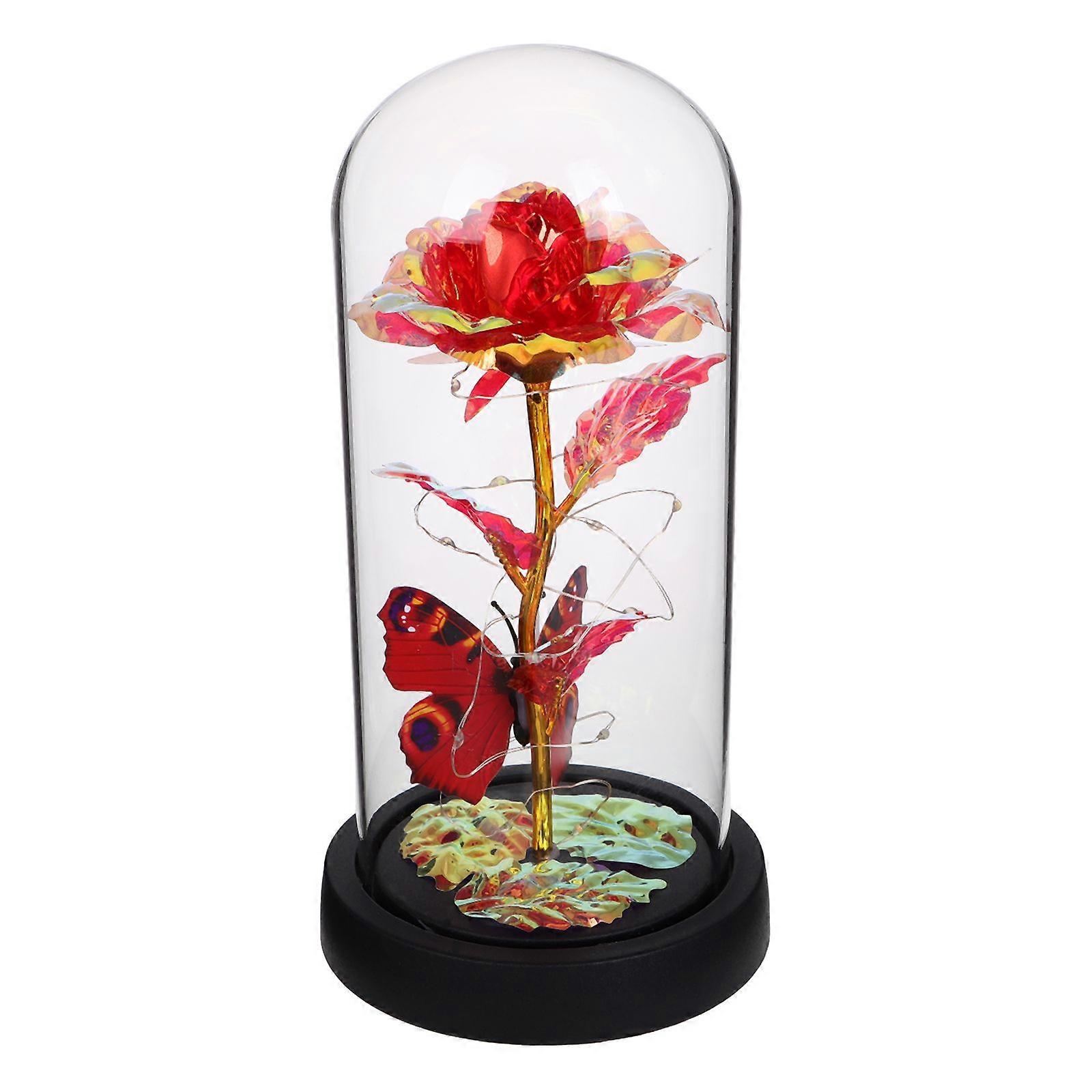 Faux Butterfly and Rose in Glass Dome Simulation Eternal Flower Light Up Rose in Glass Dome Valentine's Day Romantic Present Choice No Battery