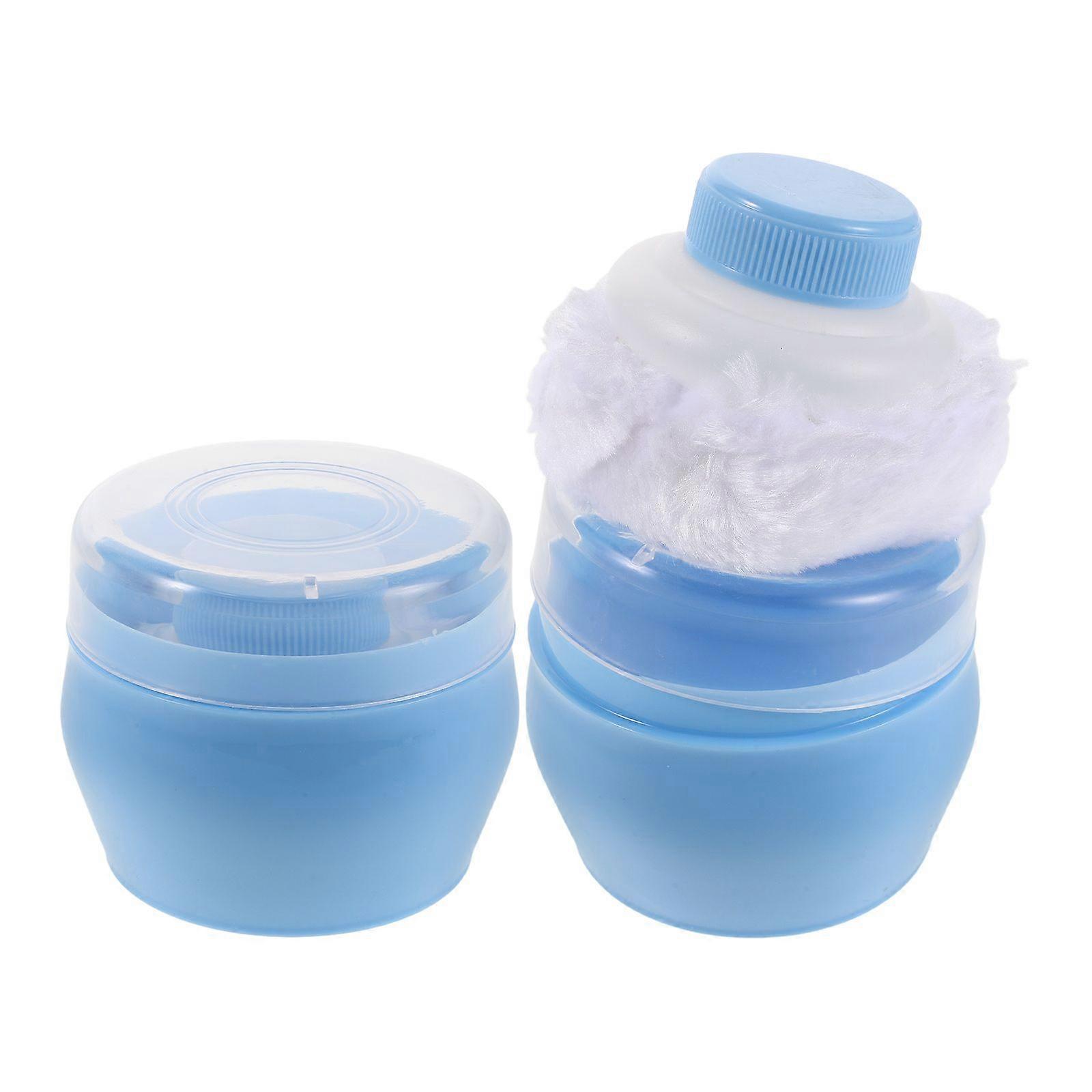 2pcs Body Powder Puff And Container, Refillable Container With Soft Puff, Infant Powder Dispenser For Nursery, Diaper Bag, On-The-Go Use Sky-blue