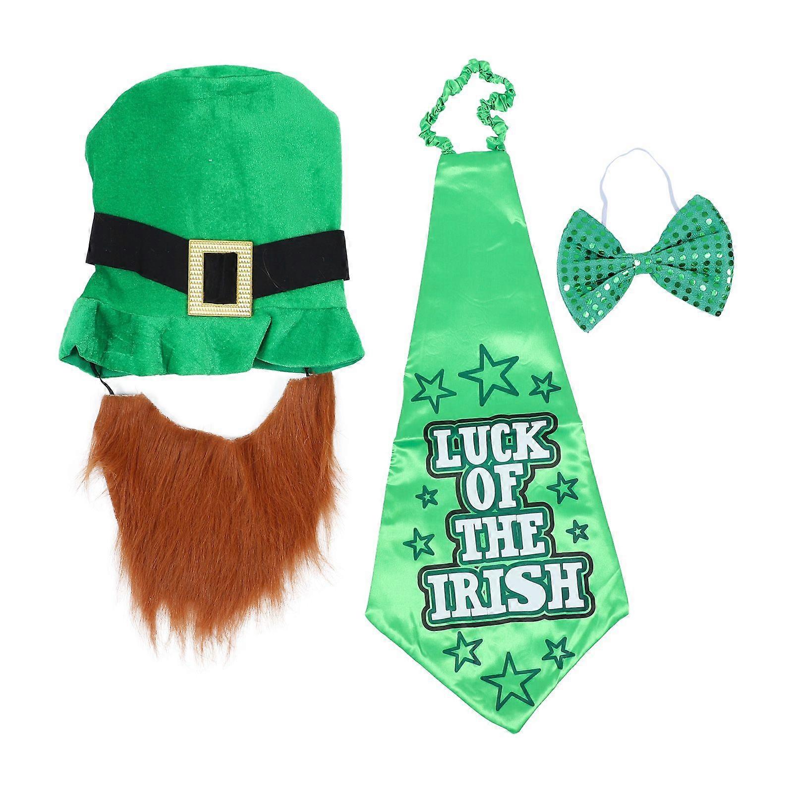 1 Set of Irish's Day Dressing up Decor St. Patrick's Day Hat Bow Necklace Necktie Kit