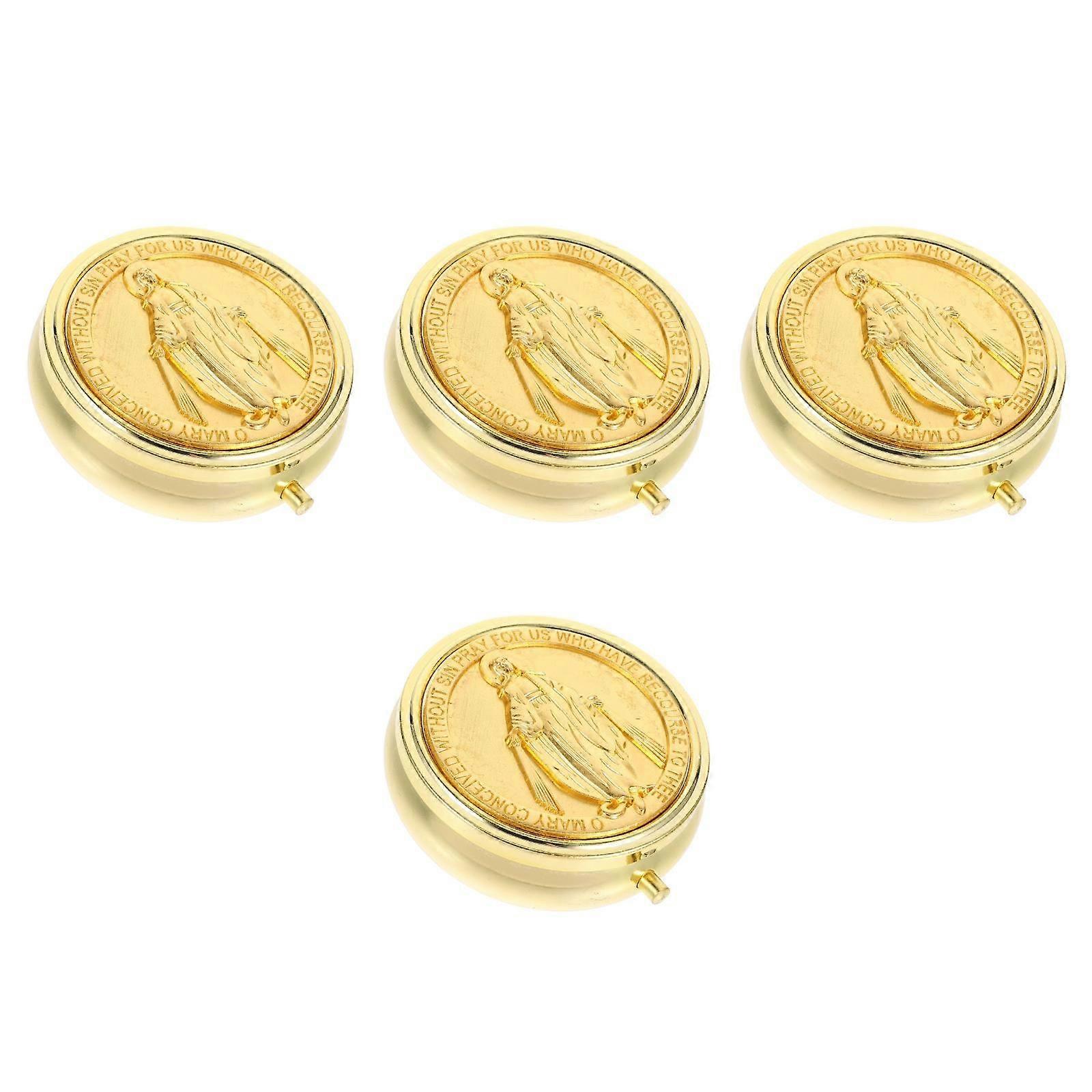 4pcs Rosaries Beads Box Vintage Rosaries Box Keepsake Jewelry Storage Container Holy Metal Keepsake Box Rosary Case Alloy Holy Container Trinket Box