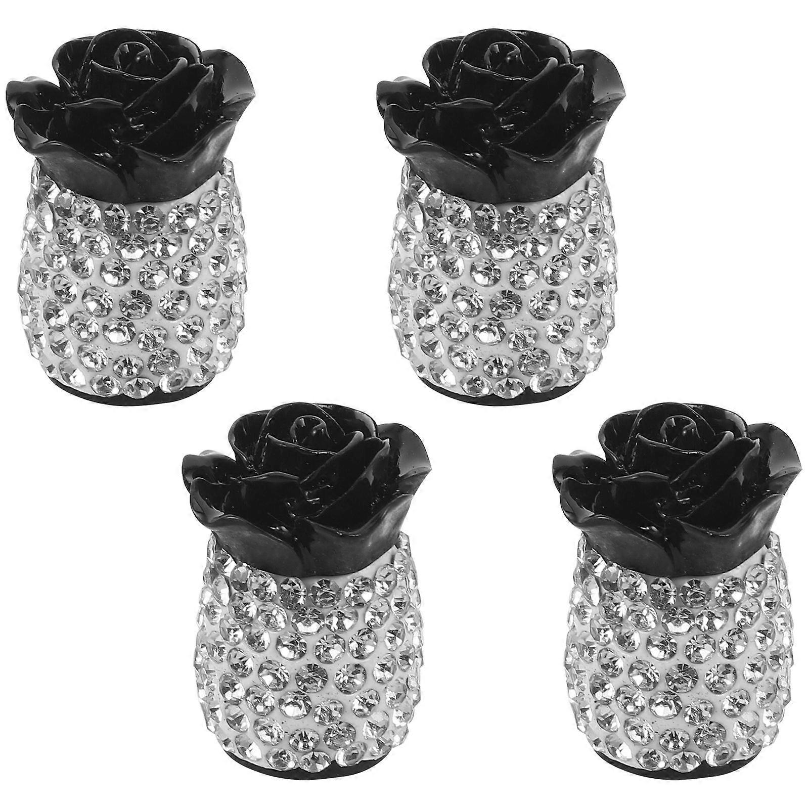 4pcs Car Valve Stem Caps: Rose Bling Rhinestone Tire Valve Cap - Auto Tyre Dust Stems Covers For Automobile Vehicles Trucks Wheel