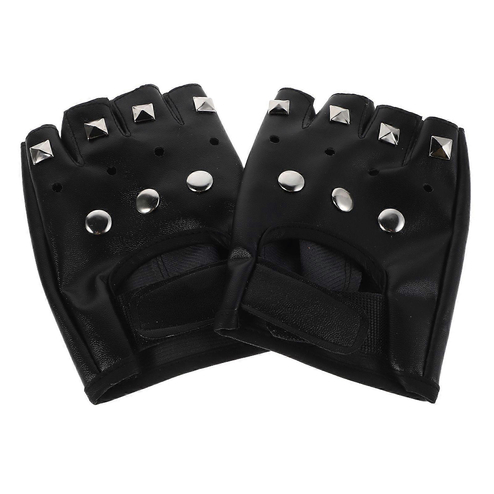 1 Pair Fingerless Motorcycle Gloves - Gothic Half Finger Glove With Rivet Pu Leather Dancing Mittens For Men Women Biker Sports Mountain Bike Riding R