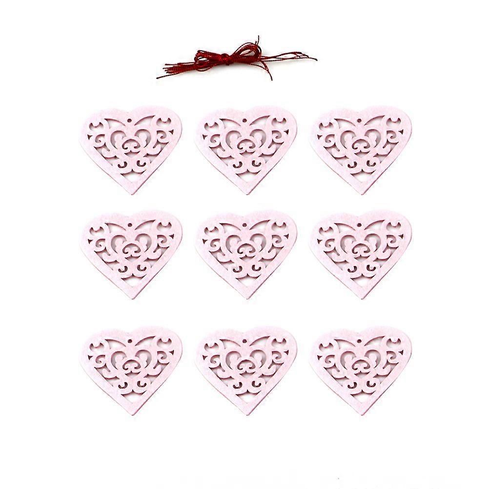 20pcs Hollow Love Pendants DIY Wooden Decorations Handmade Craft Ornaments Wedding Party Adornments Pink