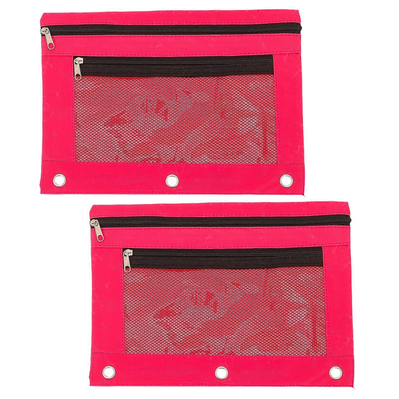 2pcs Pencil Pouch For 3 Ring Binder - Pencil Ballpoint Fountain Pen Bag With Zipper & Clear Window - File Document Storage Bag For Storing School Supp