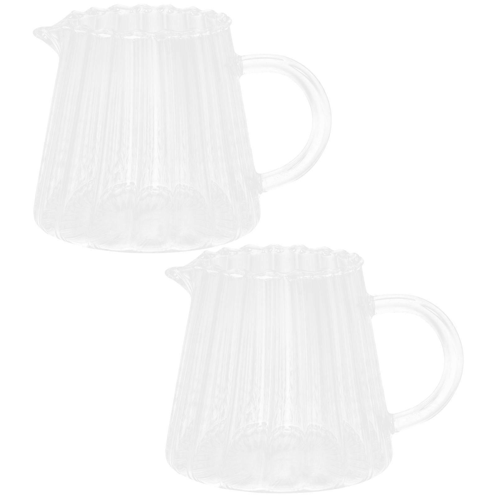 2pcs Small Glass Pitcher: 350ml Wave Creamer Pitcher Serving Jug for Coffee Milk Tea Sauce - Milk Frothing Cup Creamer Jug for Kitchen
