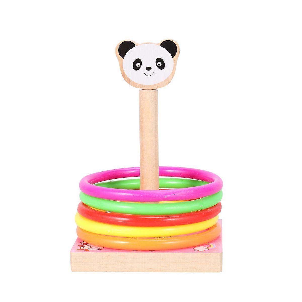 6PCS Panda Animal Toss Rings and Base Set Wooden Educational Toy Throwing Toss Rings Game for Kids Backyard Kindergarten