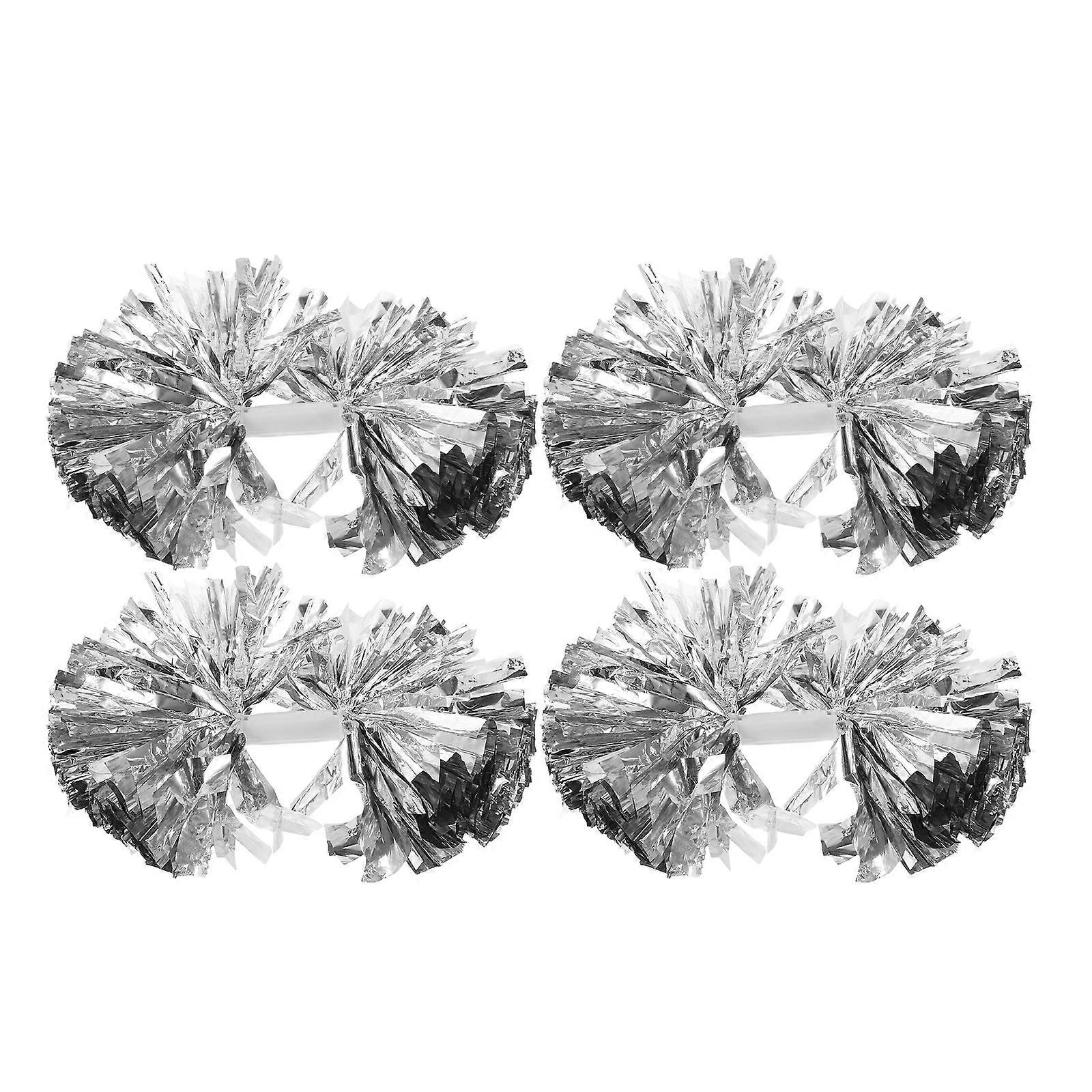 4pcs Metallic Cheerleading Pom Poms: Silver Cheerleader Pompoms with Handle for Team Spirit School Sports Dance Performances and Party Celebrations