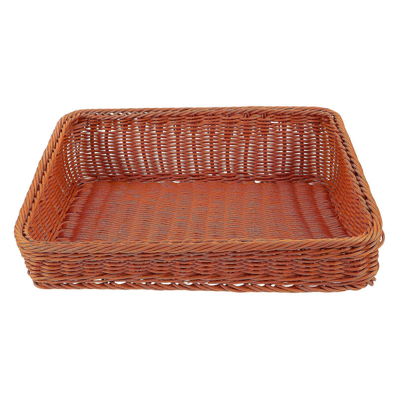 Imitation Rattan Bread Basket, Rectangular Plastic Wicker Fruit Baskets, Woven Snack Organizer, Fruit Serving Tray for Kitchen Counter 40x30cm