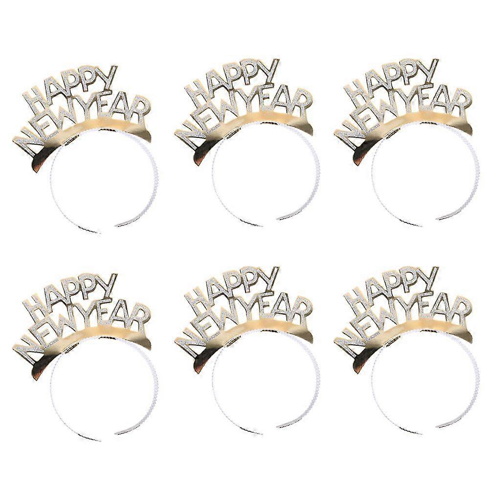 6pcs Golden HAPPY NEW YEAR Hair Hoops Premium Aluminum Headband Party Decoration Glitter Headdress Gift Party Supplies Photo Props
