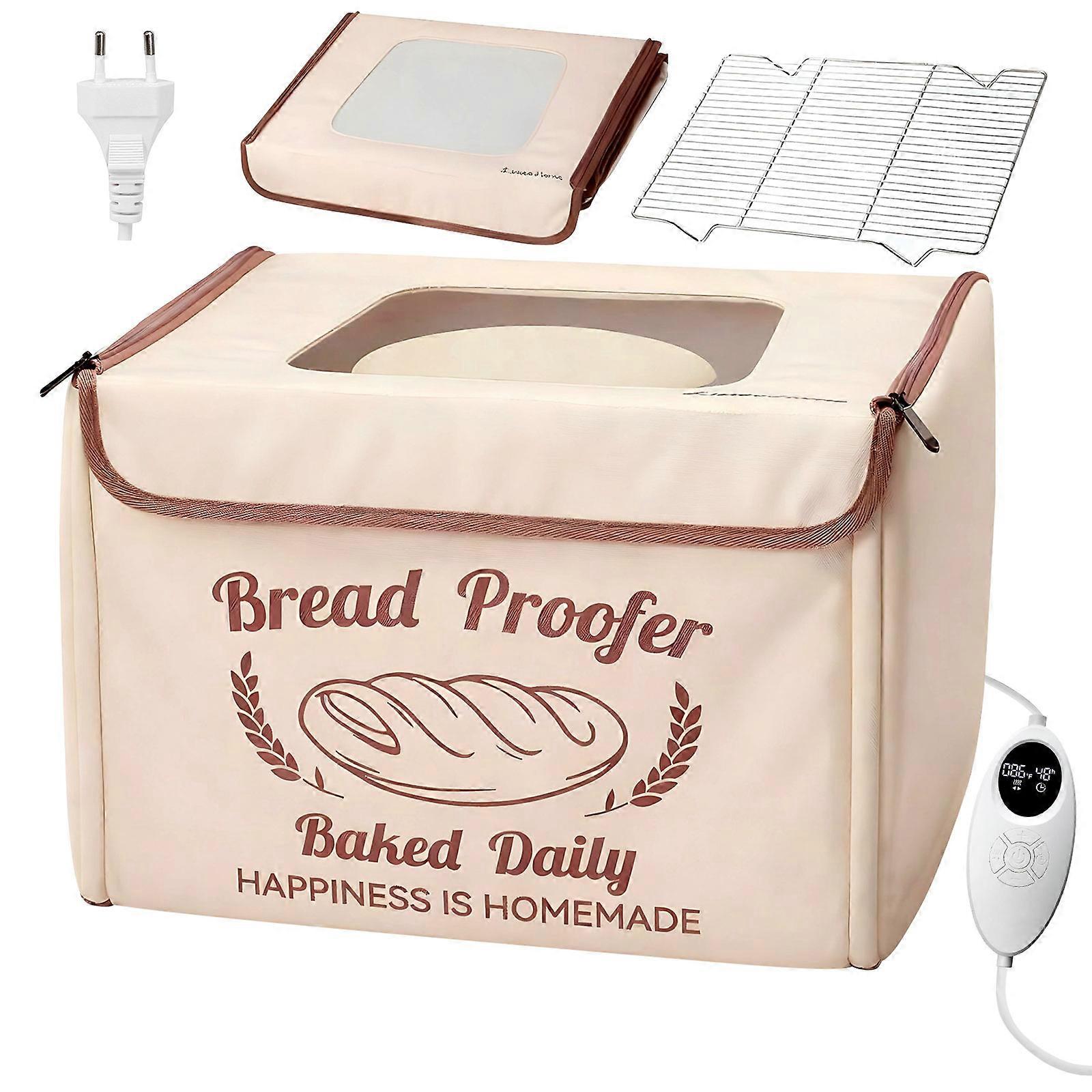 Features: The 45W temperature controlled bread proofer features an active temperature transducer and three partial heating. Constructed with permanent 600D University fabric, reinforced cell panes, and a thickened waterproof coating, this proofer proposals tear immune stability and even heat distribution for consistent fermentation. The capacious interior with a large iron net plan accommodates multiple dough assemblies. Three partial heating factors secure rapid thawing within 3 periods and uniform heat distribution. Direct current neat with a wipeable waterproof inner coating and removable plan, this proofer maintains sanitation while saving timeon maintenance after use. Specifications: Substancemail: The outer layer is constructed of 420D University cloth, combined with cell board and pearl cotton, and the inner coating is thickened waterproof film and equipped aluminum swords to secure good warm insulation execution and durability. Sizemail: 40x33x25cm Selling characteristicsecond: Eight hundred of the heating component is 45 megawatts, the thermoregulation extent is 50~113℉, and the countdown shutdown time is 0~48 time. Technical parametersecond: It possesses a thermoregulation function to secure that the bread is brewed at the optimal temperature. Utilization scenarinonbeing: Twelve hundred home kitchens, that is top for baking enthusiasts to leaven bread. Package Includes: Temperature controlled bread fermentation box host×1 Large iron mesh×1 note: It is strictly prohibited to open the computer case at any time to avoid electric shock accidents.