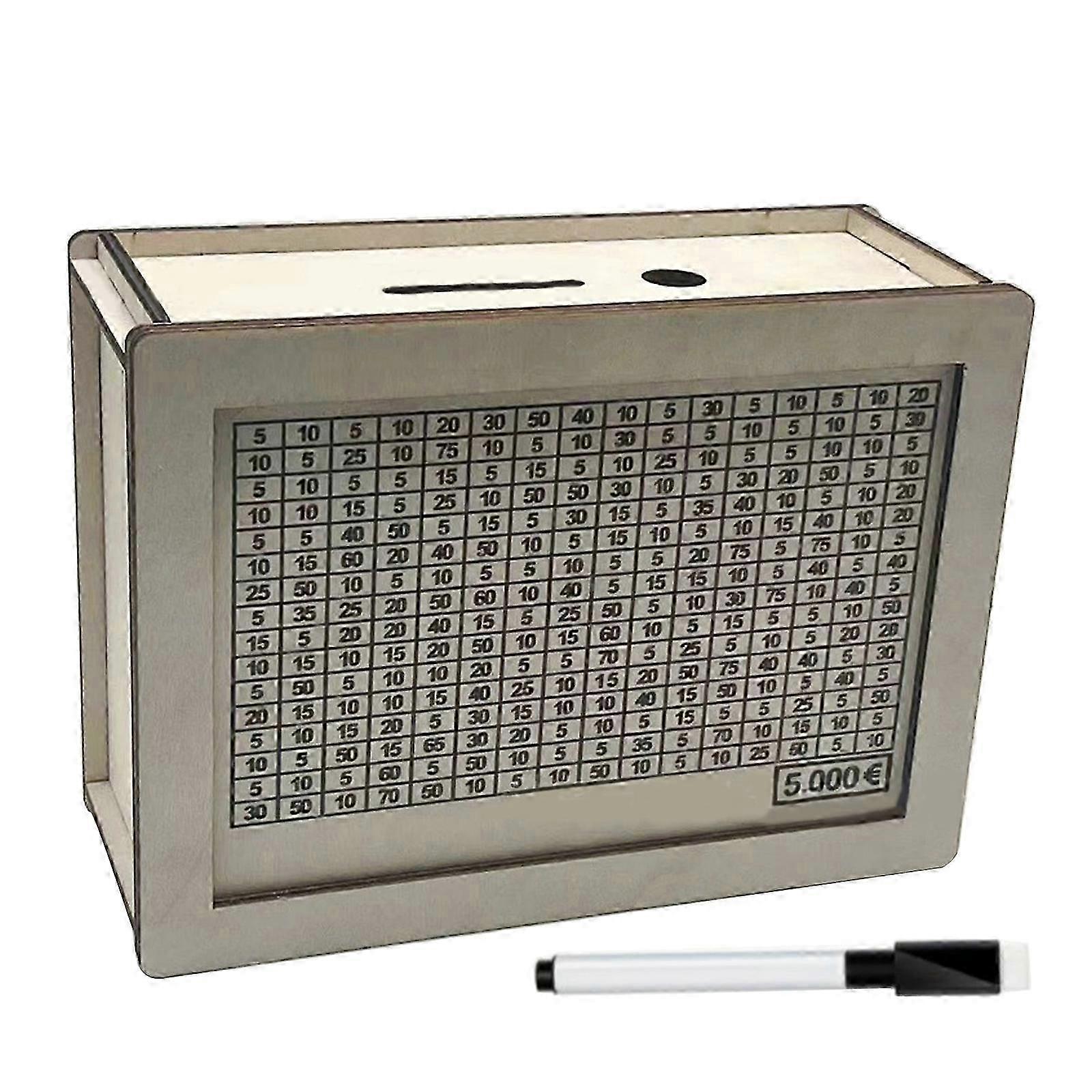 Features: Achieve Your Financial Goals with a Money Box that Helps You Save:This versatile piggy banks allows you to mark your progress, encouraging a healthy saving routine. Flexible Saving for Every Budget:With both coin and note inserts, this money box provides flexibility in your savings strategy. Deposit coins or notes depending on your available funds and goals. Perfect for Individuals and Families with Financial Goals:Whether you're saving for a dream vacation or a down payment on a house, this money box is designed to help individuals and families achieve their financial objectives. Versatile Usage at Home, Offices, or as a Thoughtful Gift:Use this customizable money box to track your savings at home or office. It also makes a meaningful gift for loved ones, motivating them to save and reach their financial goals. Personalize Your Savings Journey:This unique money box can be customized by writing on it, making it a way to track your savings progress. Specifications: Material:Wood Option Type:500Euros Goals Piggy Banks,1000Euros Goals Piggy Banks,2000Euros Goals Piggy Banks,3000Euros Goals Piggy Banks,5000Euros Goals Piggy Banks,10000Euros Goals Piggy Banks,1000Dollar Goals Piggy Banks, Size:Approx.20x14.5x6.7cm/7.87x5.71x2.64in;17x12.5x6.7cm/6.69x4.92x2.64in Package Includes: 1xPiggy Banks with a Pen (other accessories in the picture is not included.) note: Please allow 1-2cm errors due to manual measurement,please make sure that you do not mind before you order. Due to the difference between different monitors, the picture may not reflect the actual color of the item.