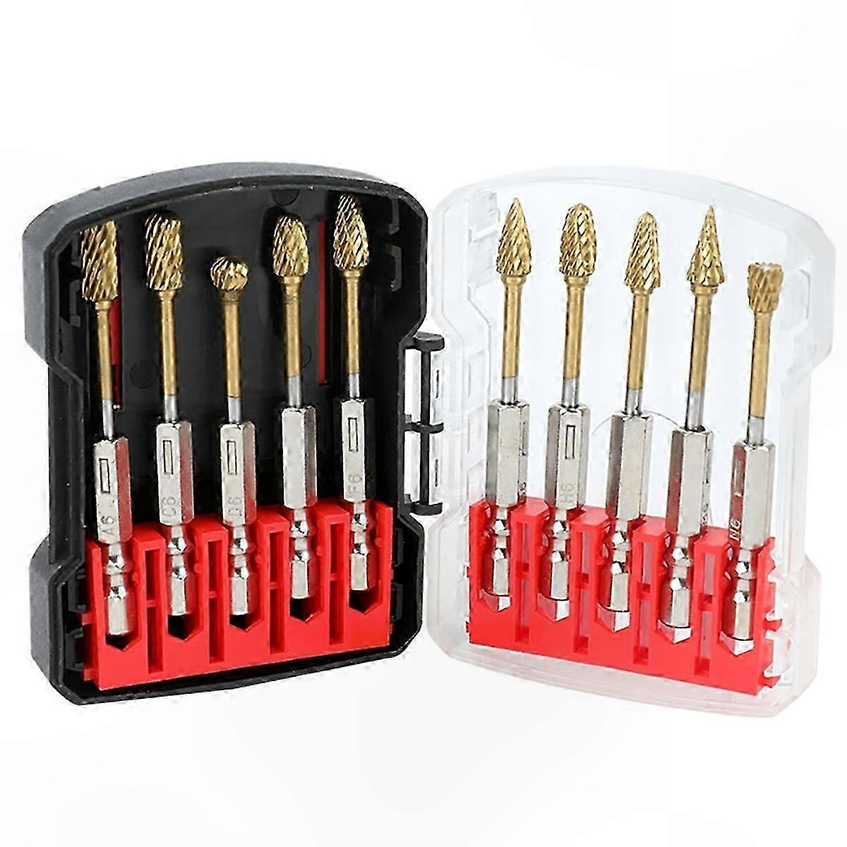 Titanium-Coated Hex Handle Rotary File Set, 10-Piece Double Slot for Electric Grinding Tools
