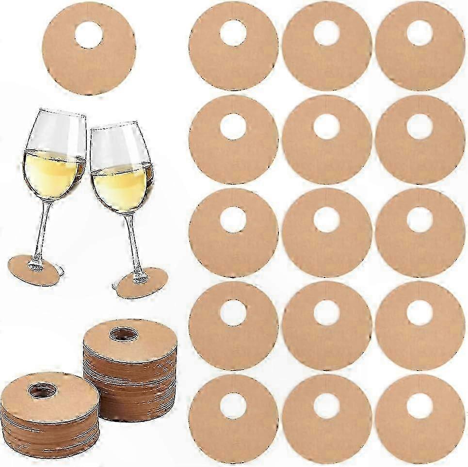 150 Blank Paper Drink Markers for Wine Glasses 2.8" Round Disposable Stemware Tags in BurlyWood and White for DIY Identification