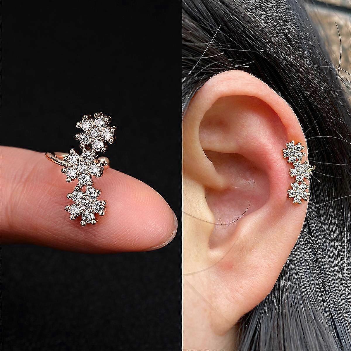 1pc Gold Leaf Clip Earring Non-Piercing Vintage Crystal CZ Ear Cuff Women Party Jewelry