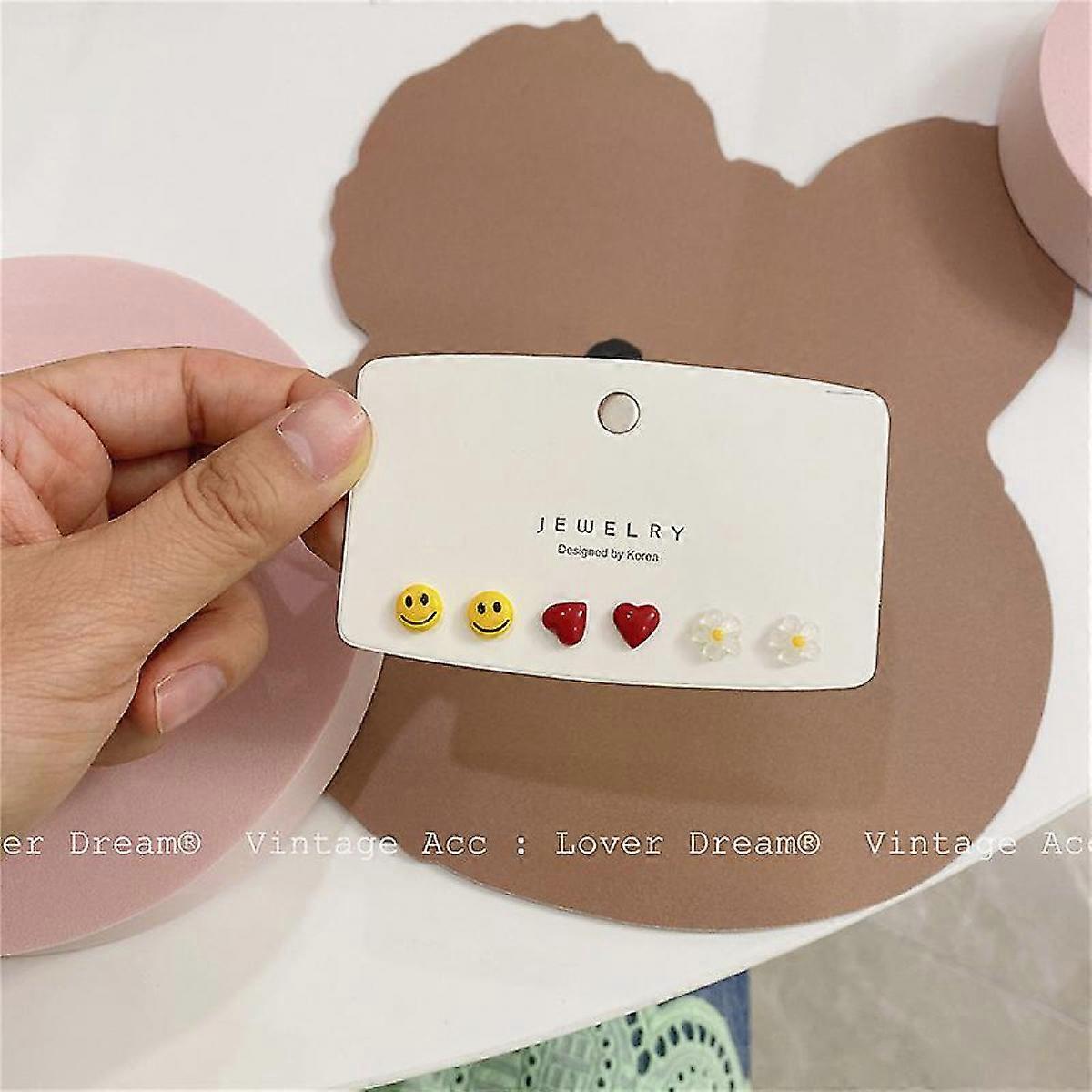 Retro Smiling Face Earrings Korean Style Red Love Set