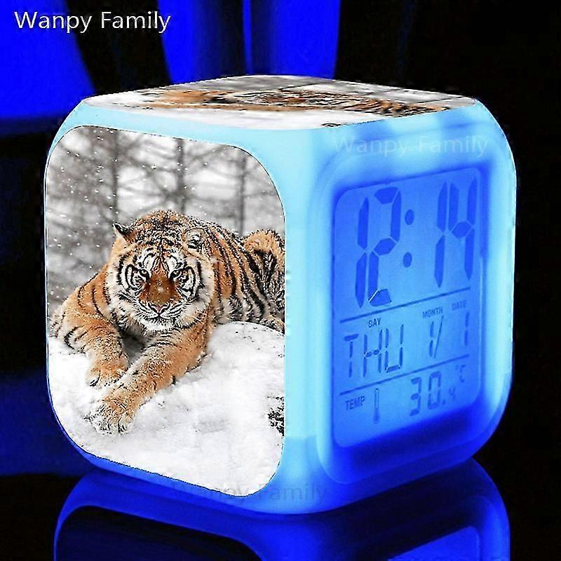 Snow Tiger Alarm Clock with 7 Color Change Glowing LED Digital Display