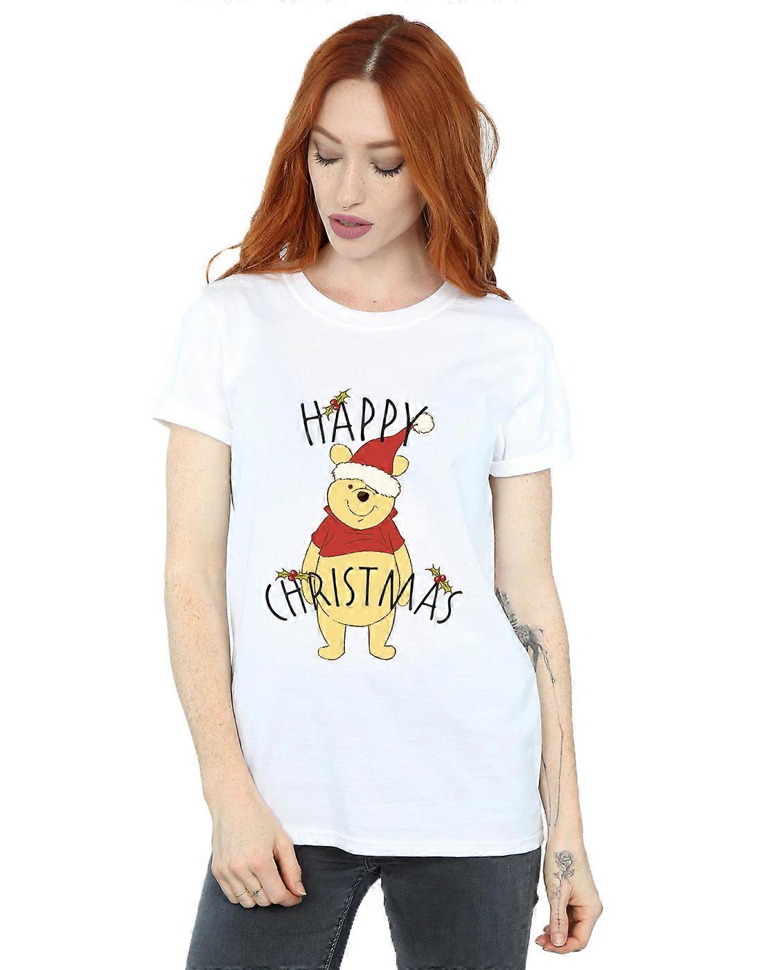 Disney Women's Winnie The Pooh Happy Christmas Holly Boyfriend Fit T-Shirt