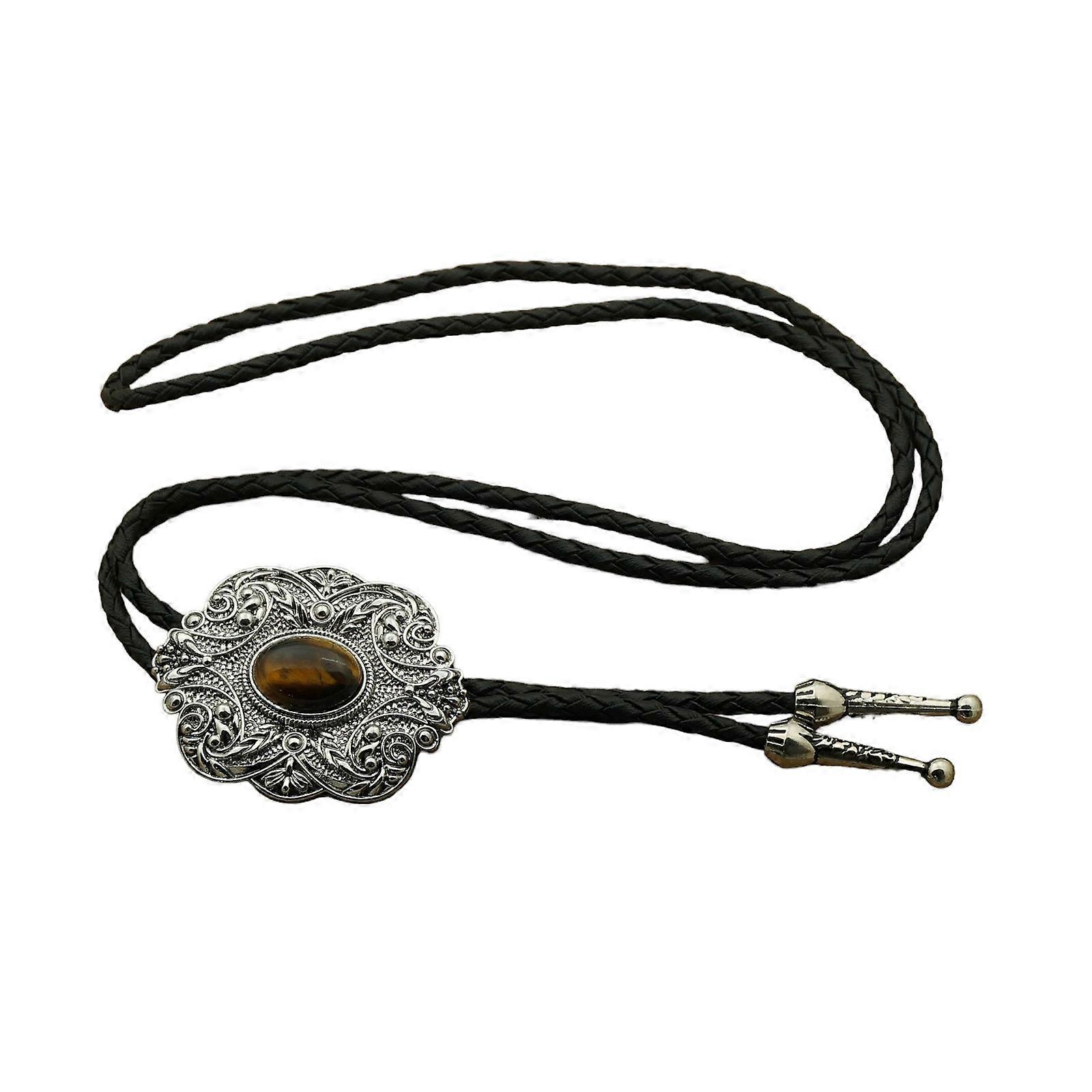 Mens Women American Bolo Tie Vintage Western Cowboy Shirt Chain Collar Stone Necktie Leather Rope Jewelry Necklace Multicolor