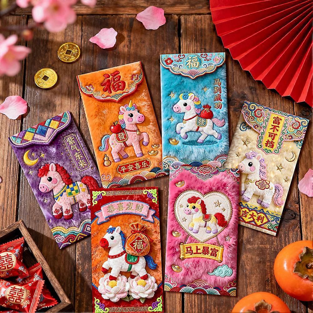 6-Pack Year of the Horse Red Envelopes - Traditional Lucky Money Bags for Children, Perfect Gift Choice for 2026