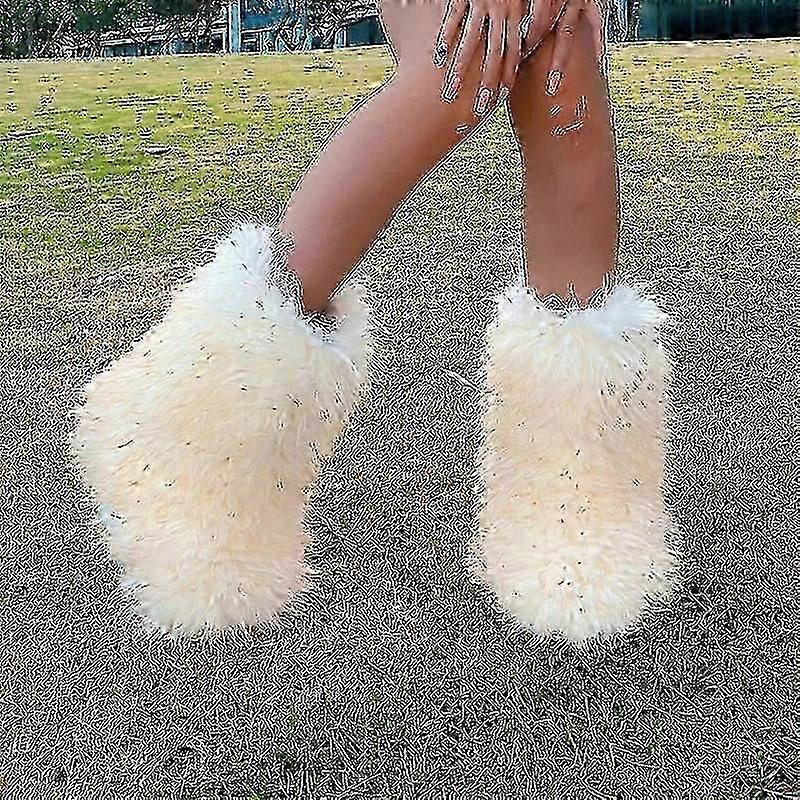 Fuzzy fluffy furry boots for women round toe suede
