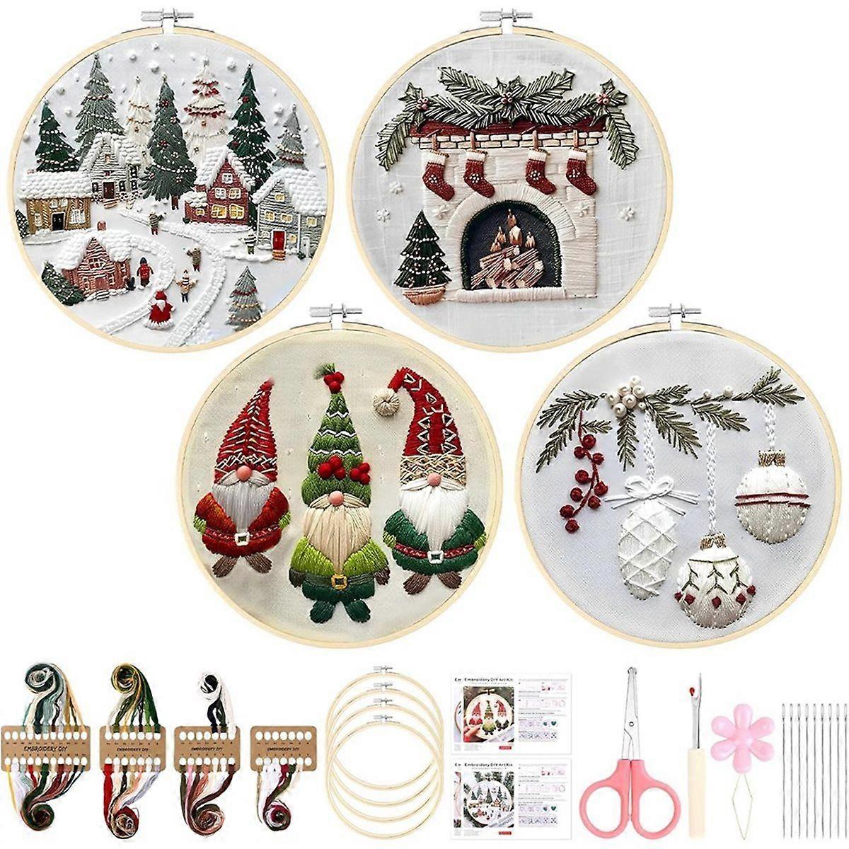 Christmas Embroidery Kit,for Adults & Beginners - Gnomes & CrossStitch Patterns, Cotton, Threads, N