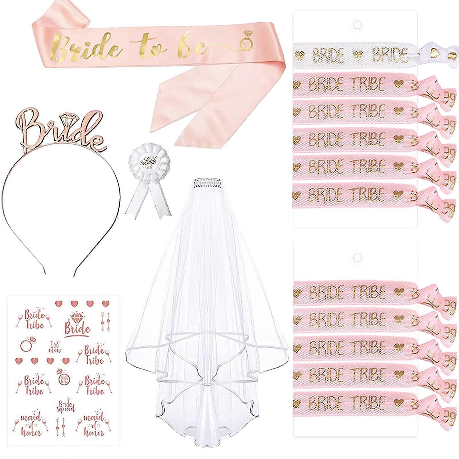 1set Lace Veil&Brooch&Sash&Metal Headbands Set Wedding Wedding Day Photography Woman Girl Lace Veil with Fixed Comb Multicolor