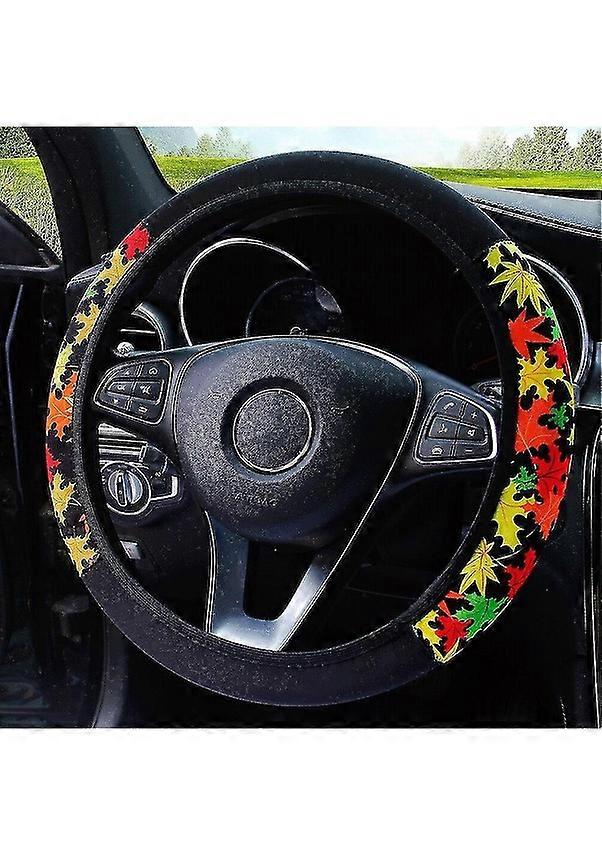 Padalink 38cm Flexible Circular Steering Wheel Cover for Cars - Ethnic Patterned, Non-Slip, Maple Color Car Interior Accessories Other