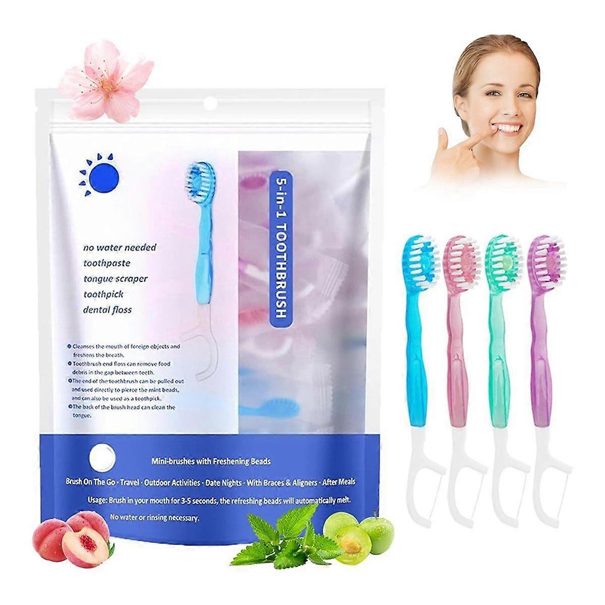 5 in 1 Toothbrush & Floss, 26Pcs Mini Toothbrushes with Toothpaste, 5-in-1 Convenient Mini Toothbrush