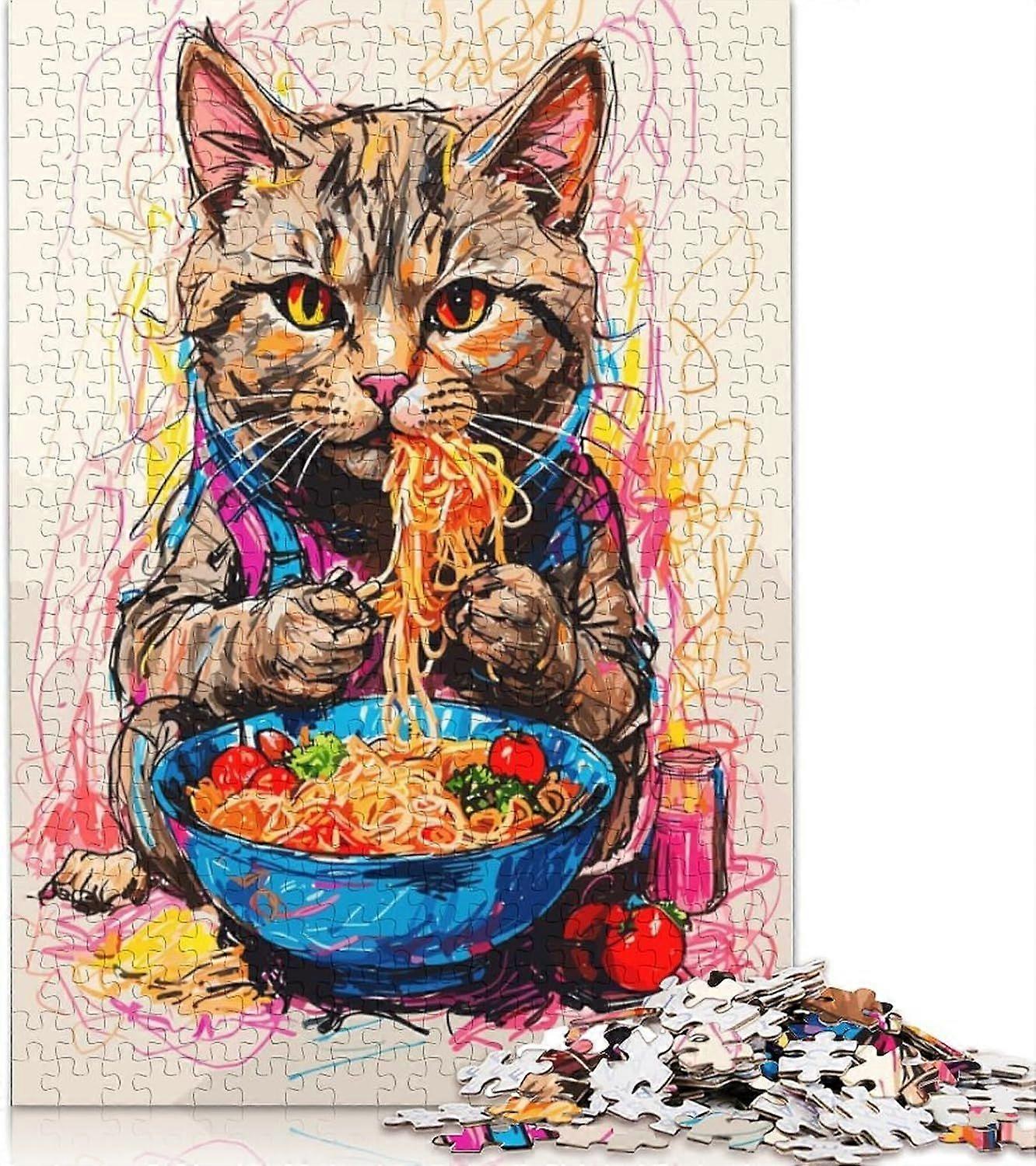 Cat Ramen Japan Jigsaw Puzzles Puzzle for Adults Kids. Great Gifts Challenge Toy Educational Game Home Decoration for Adults& Kids WDM-02007