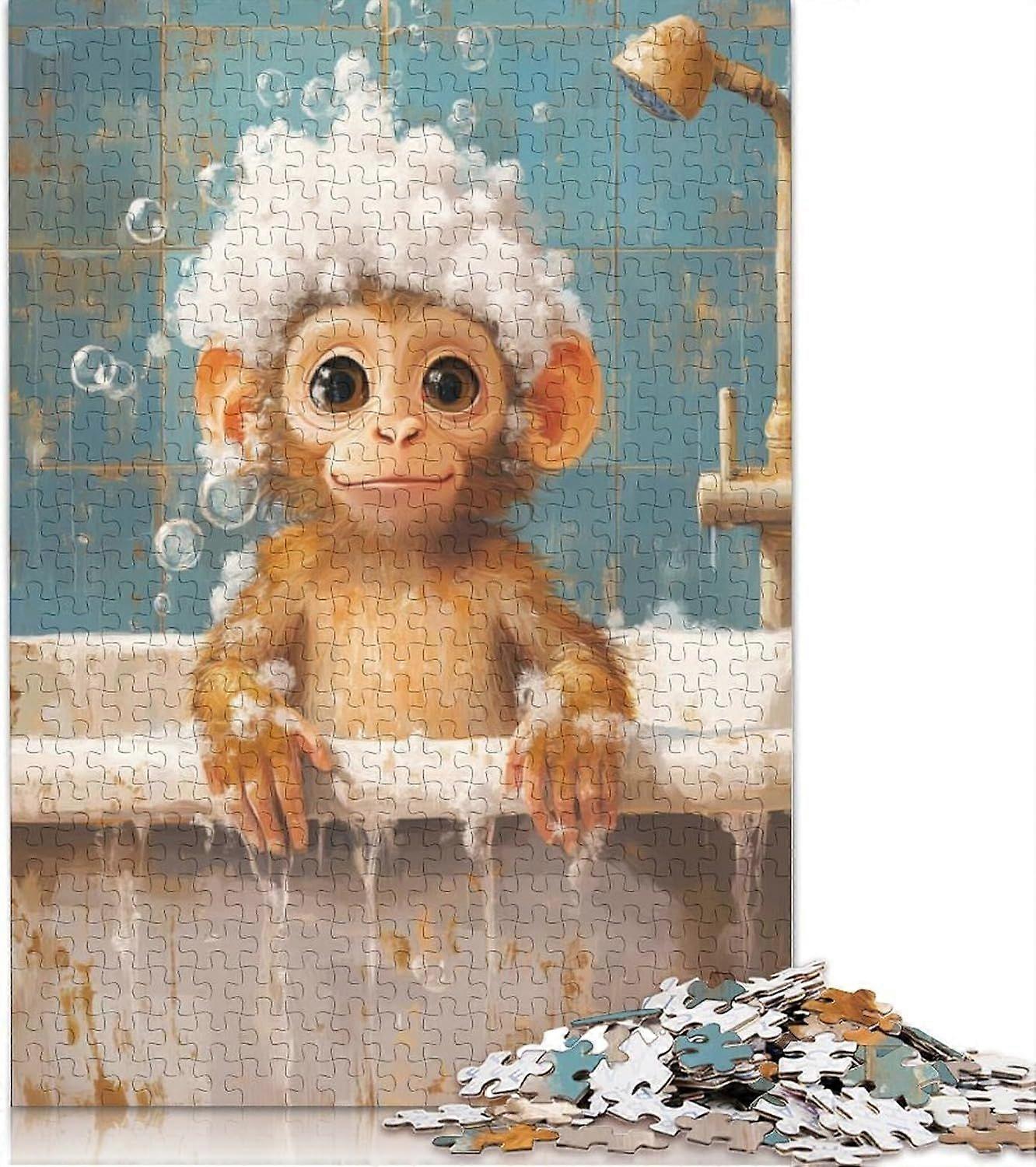 Monkey Bath Time Puzzle Premium Jigsaw Puzzle for Women Men Unique Gift WDM-0948