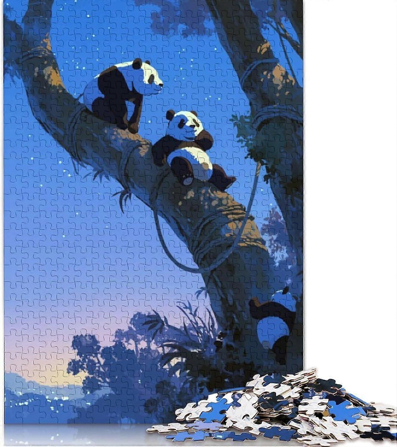 Three Pandas in Trees Jigsaw Puzzles Puzzles for Adults Kids. Whimsical Challenge Toy Educational Game Home Decoration for Adults& Kids WDM-01394