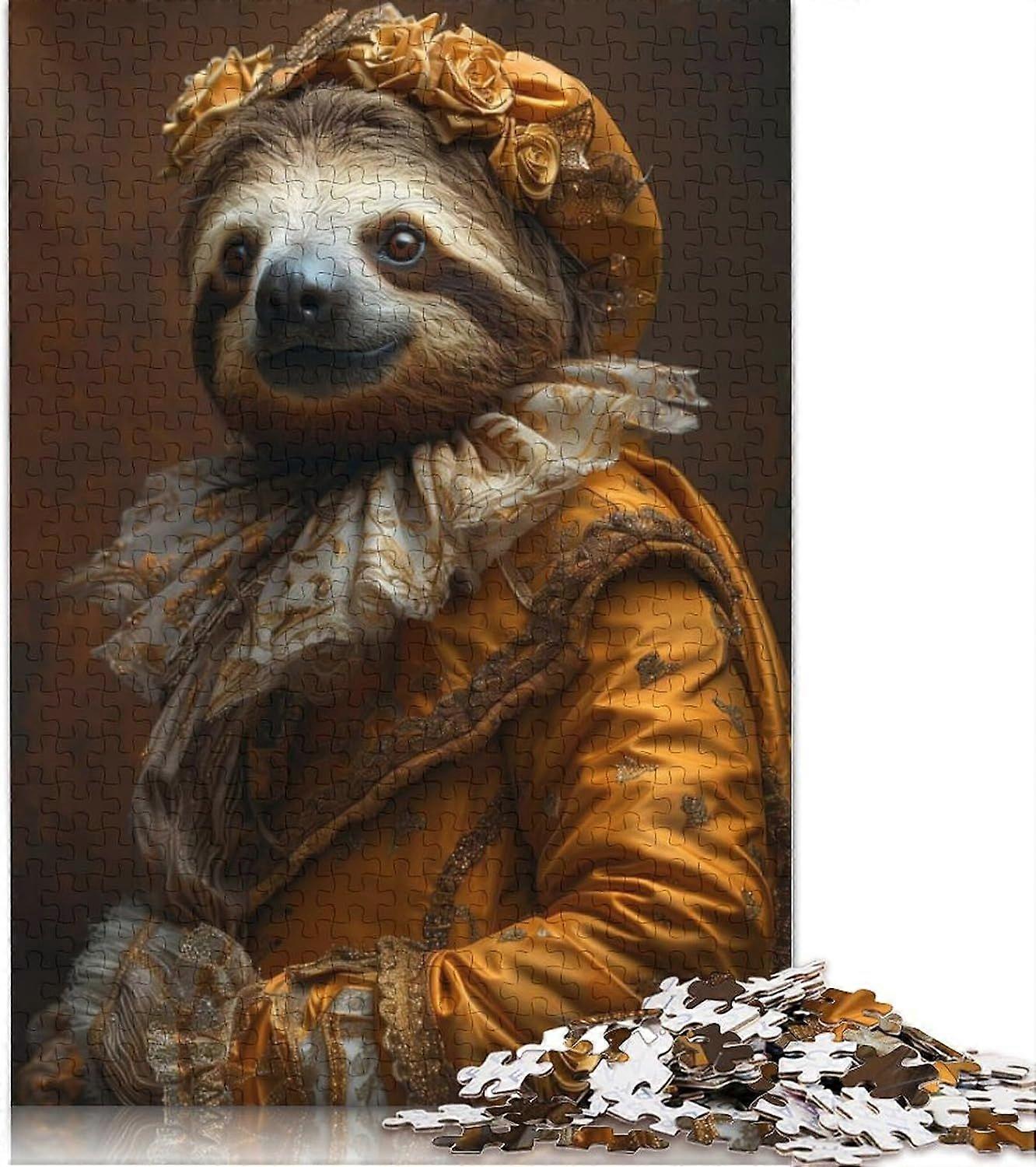 Renaissance Sloth Majesty Jigsaw Puzzles Puzzles for Adults Kids. Great Gifts Challenge Toy Educational Game Home Decoration for Adults& Kids WDM-0174