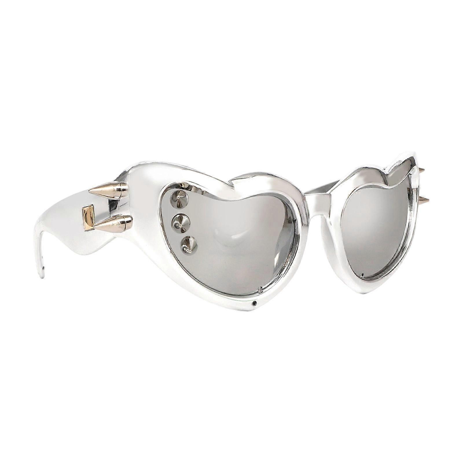 Heart shape Rivet Studs Sunglasses with UV400 Protections Fashion Eyewears for Women Outdoor Use Bridal Shower Accessory Electroplated silver