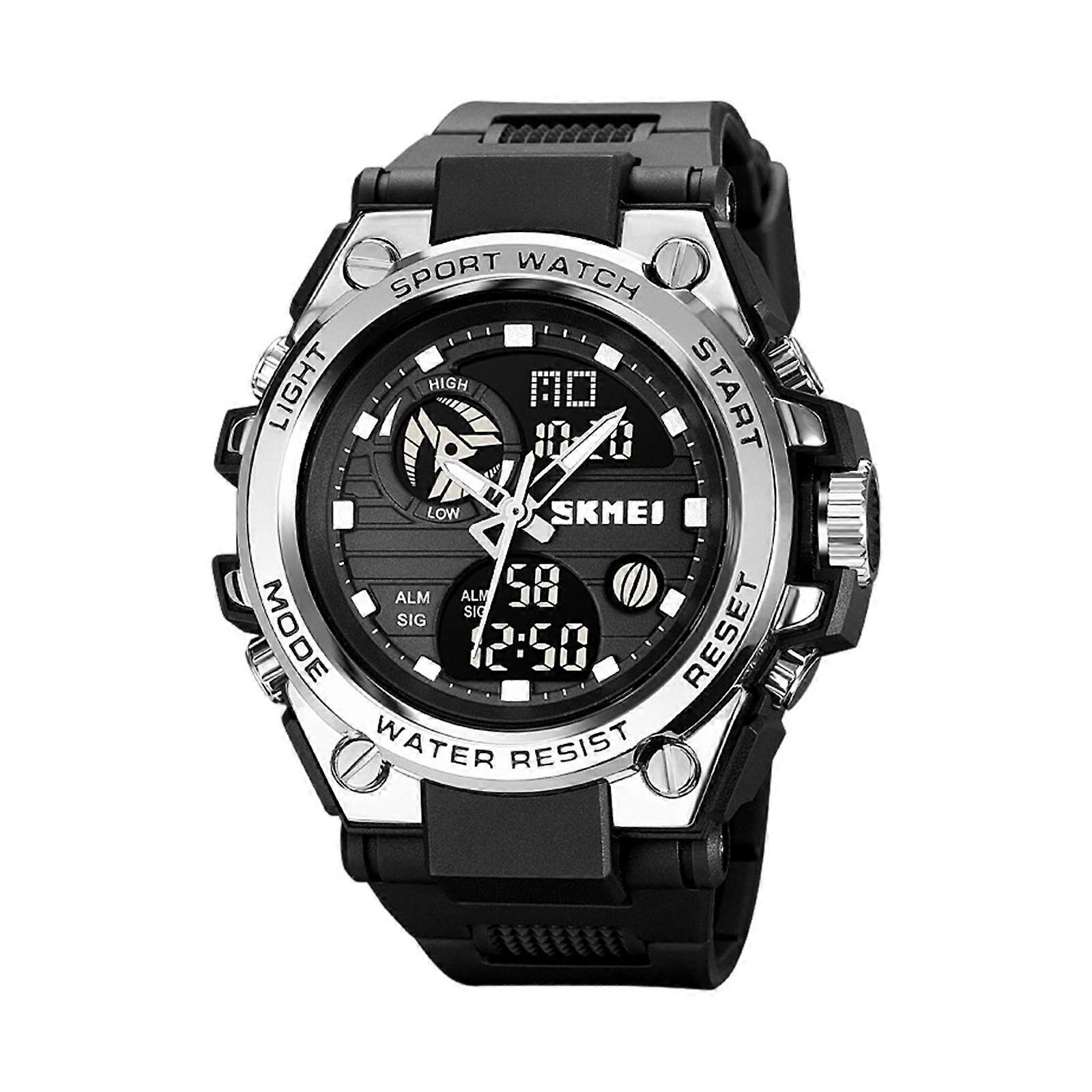 Everyday Wear Men's Electronic Watch PU Strap Lightweight Wrist Watches for Commuting Travel Waterproof Multifunction Silver
