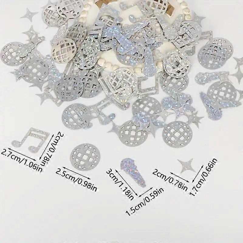 Set of 300 multicoloured disco confetti - Decorative glitter star - Musical note - Microphone for birthdays, weddings, balls, anniversaries