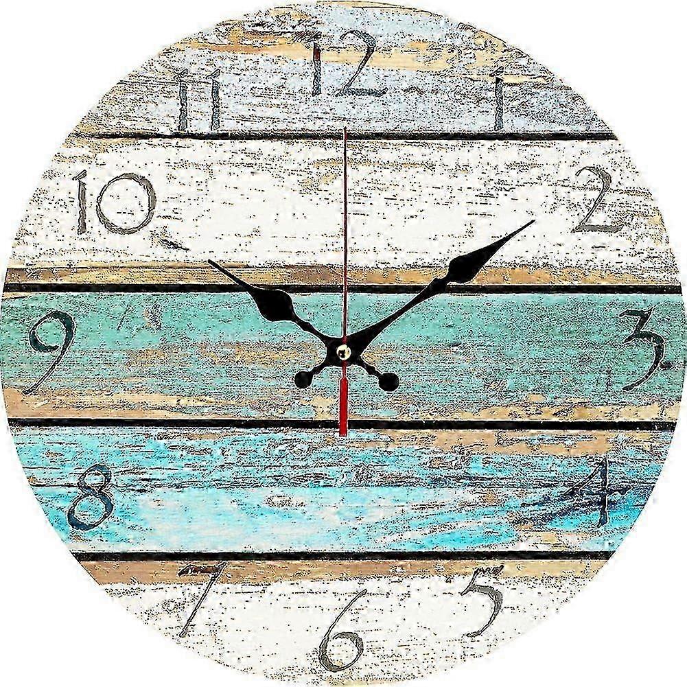 12" Vintage Arabic Numerals ,Shabby Beach, Weathered Beachy Boards Design ,Ocean Colors Old Paint Boards Printed Image, Rustic Mediter