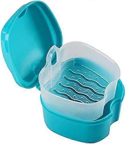 Blue Denture Case, Prosthesis Cup with Strainer, Denture Bath Box, False Teeth Storage Box with Basket, Net, Container Holder for Travel