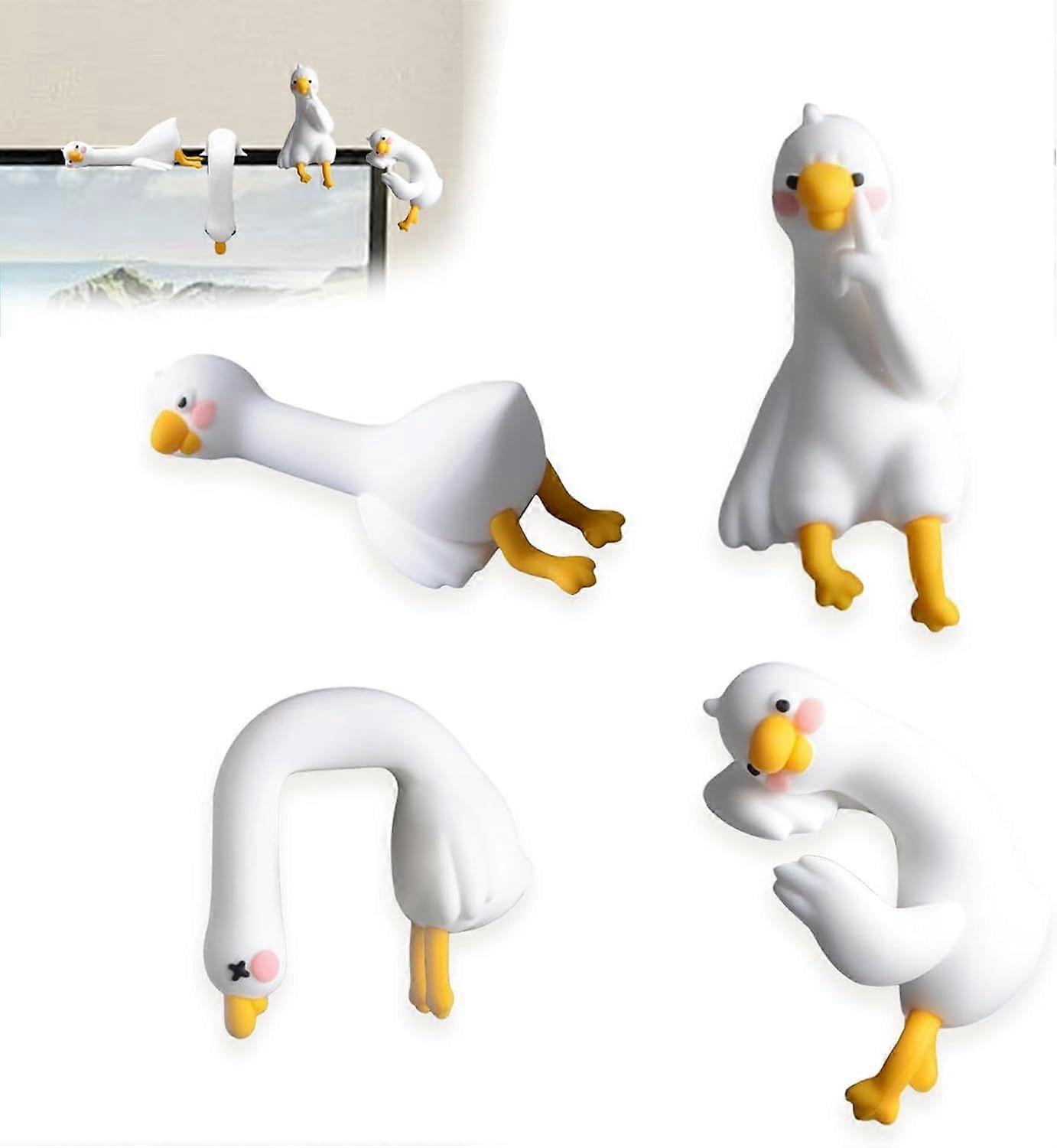 4 Pcs Mini Resin Goose Figurines,Cute 3D Craft Figurine Computer Decors, Small Animal Ornaments,for Office and Home Seating Arrangements