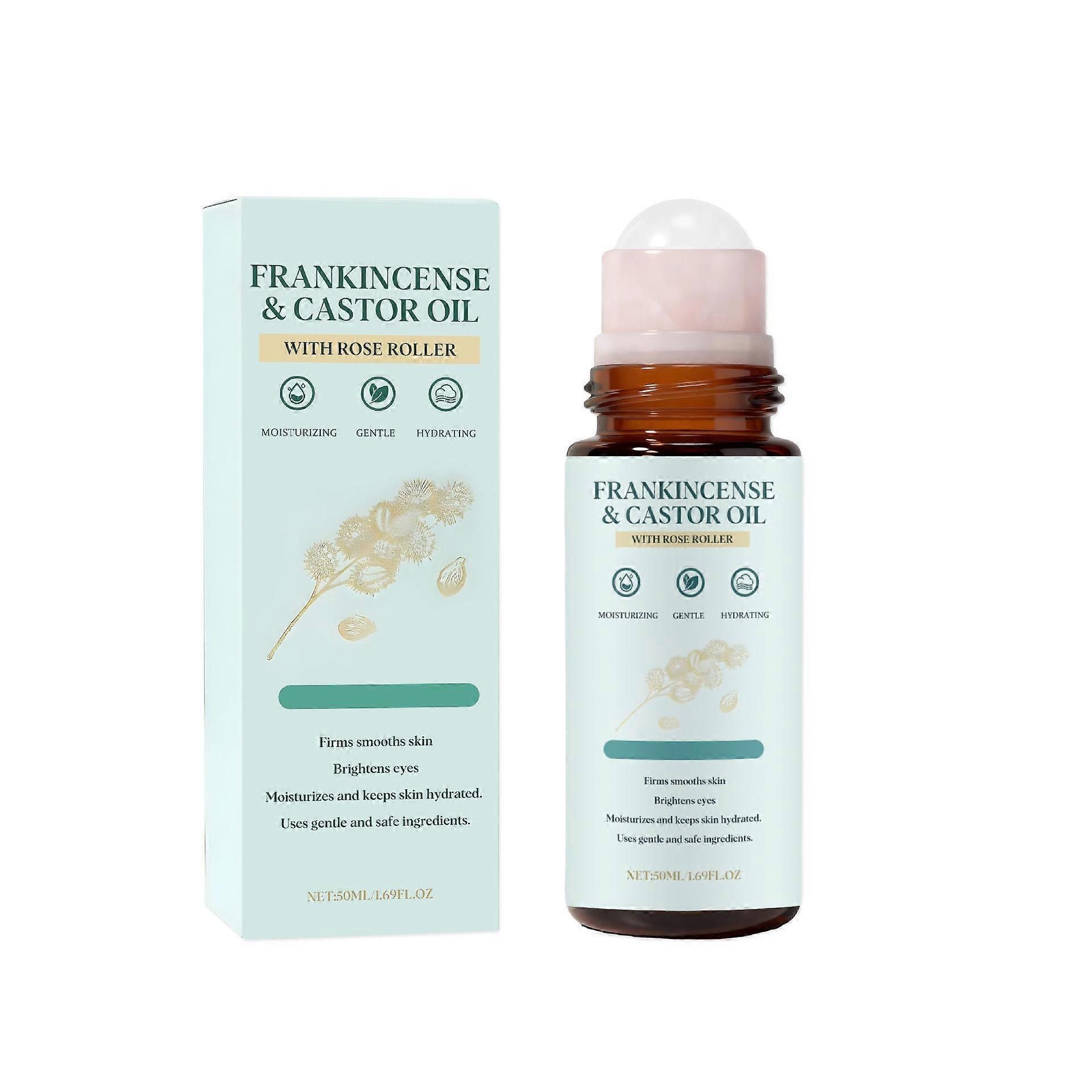 Frankincense and Castor Oil Rose Quartz Roller, Organic Cold-Pressed Castor Oil Roll-On, Firms Smooths Skin, Brightens Eyes, Reduces Scars Stretch Mar