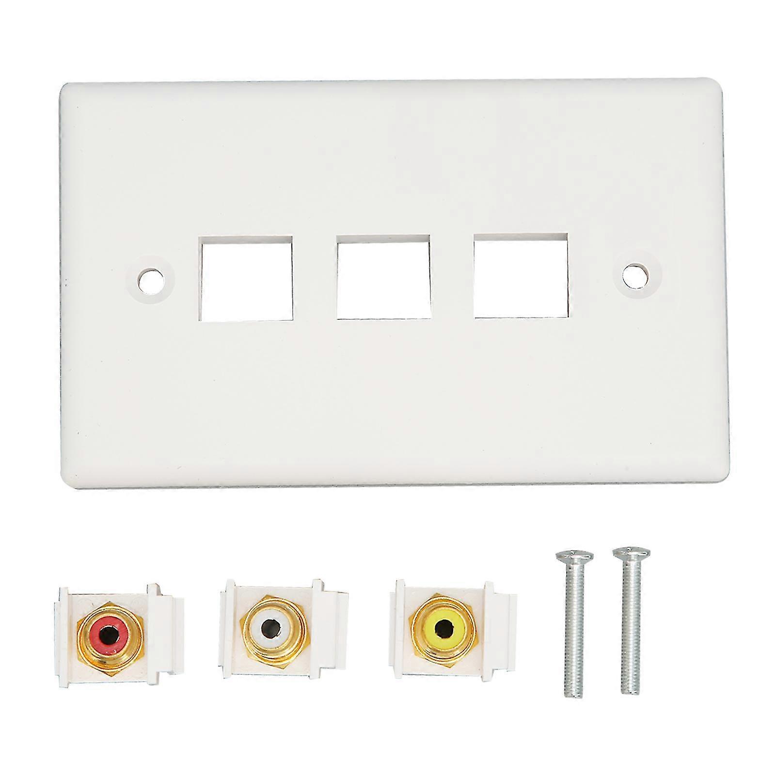 3 RCA Wall Plate with Gold-Plated 1080P Corrosion-Resistant Female Connectors for Home Theater AV Systems