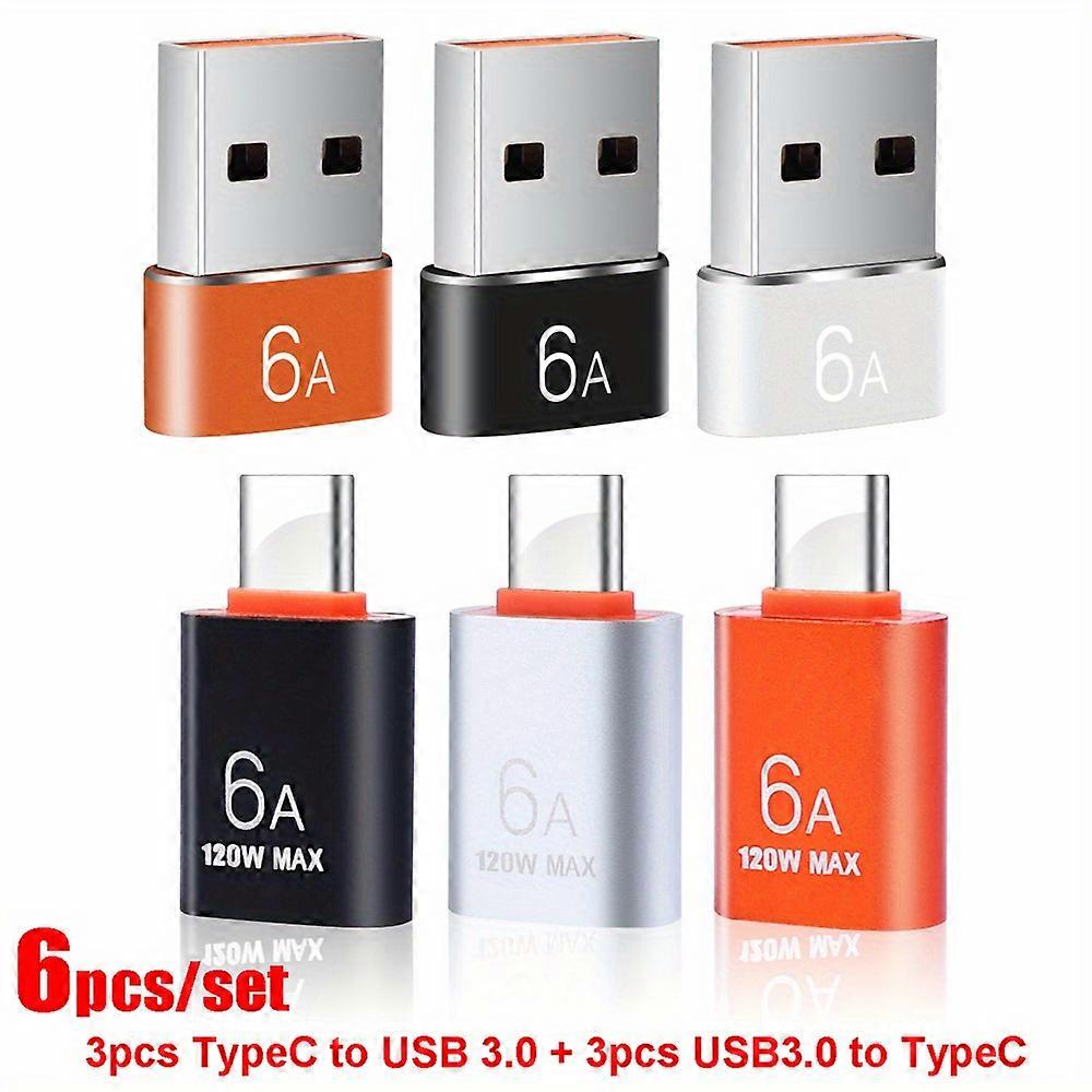 6Pcs 6A USB To Type C OTG Adapter 120W USB-C Male To Type-c Female Charger Converter for Macbook Samsung Data Transfer Adapter