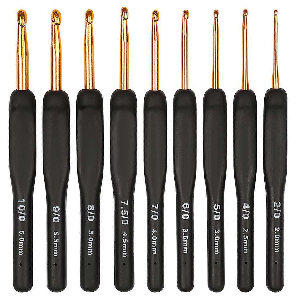 9Pcs Black Crochet Hooks Needles for Arthritic Hands 2.0-6.0mm Crochet Hook Set Ergonomic Soft Grips Knitting Hook for Knitter