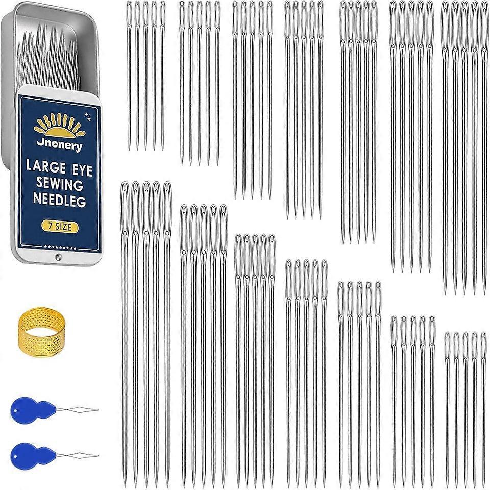 BUDDUR Stainless Steel Large Eye Sewing Needles Kit With Needle Threader And Storage Box For Weaving DIY Handmade Craft Tools