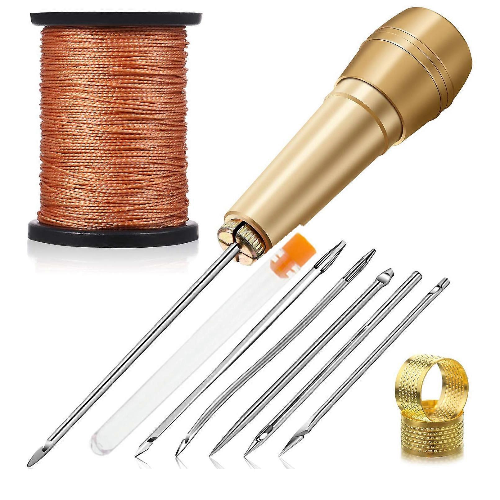 11 Pieces of Handmade Leather Sewing Tools for Shoes and Leather Repairs, 6 Copper Handle Canvas Leather Sewing Tapered Needles