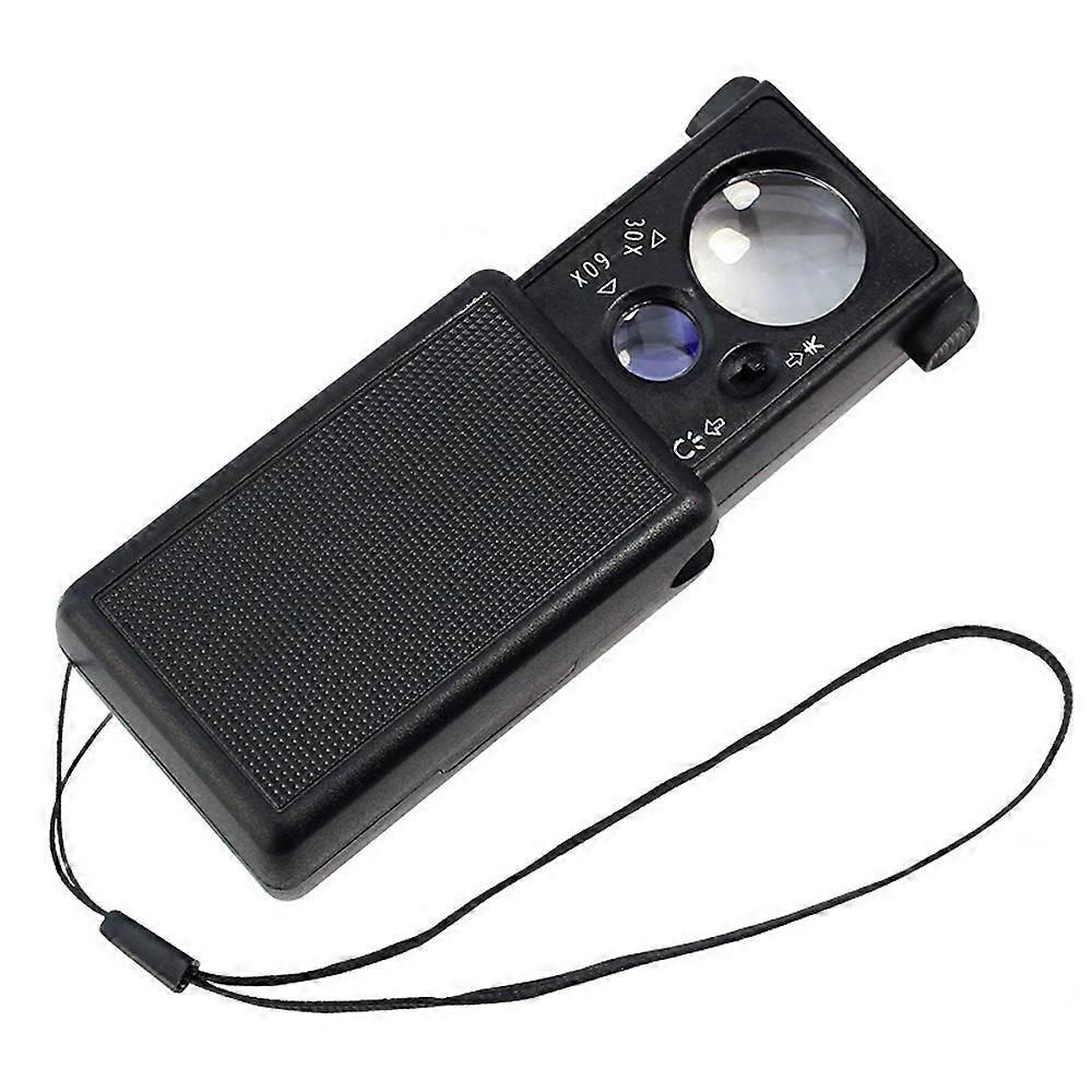 Mini Pocket Magnifier 30X 60X Jewelers Loupe Lighted Loupe Lens With LED & UV Light For Coins Identifying Type Diamonds Stamp