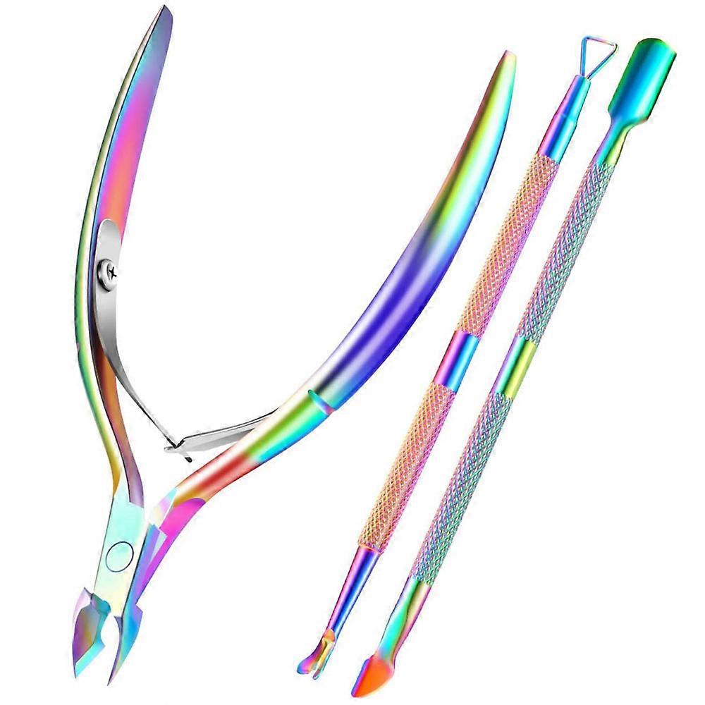 3pcs Stainless Steel Dual-Headed Cuticle Pusher + Nail Nippers Scissors Professional Dead Skin/Nail Polish Remover Manicure Tool