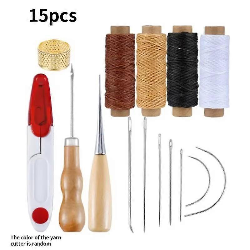 15pcs Leather Craft Sewing Kit Waxed Thread Hand Quilting Needles Sewing Awl Leather Repairing Tools Beginner