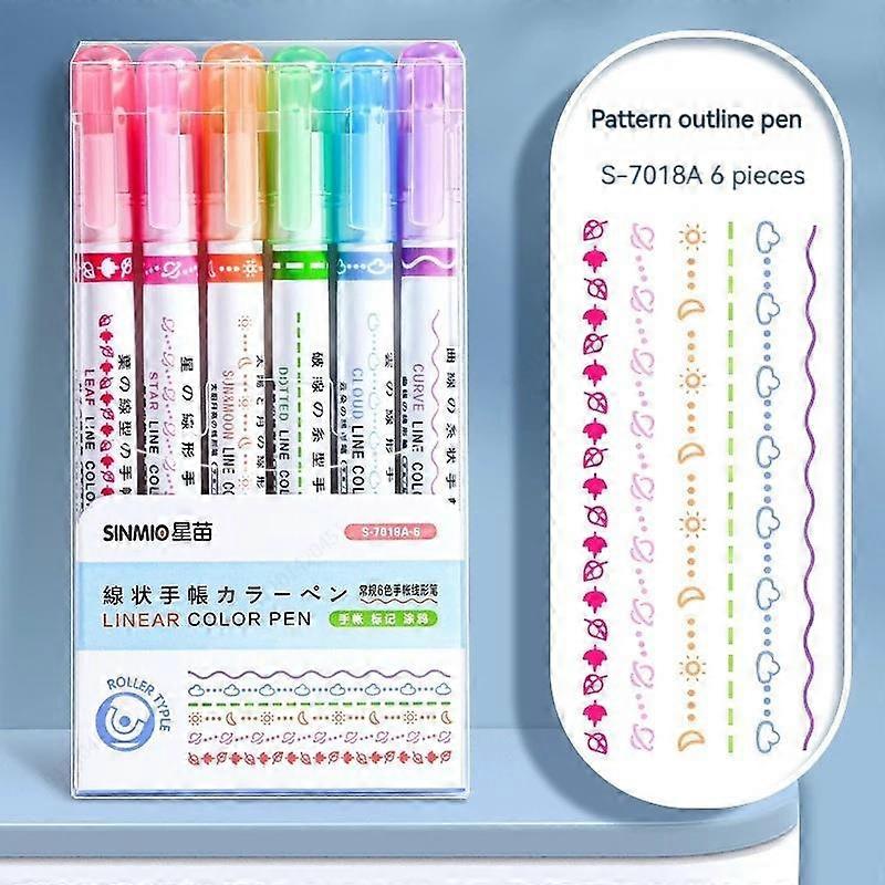 6Pcs/Set Line Shaped Highlighter Roller Tip Curve Liner Marker Pens Graffiti Pen Kawaii Korean Stationery School Office Supplies